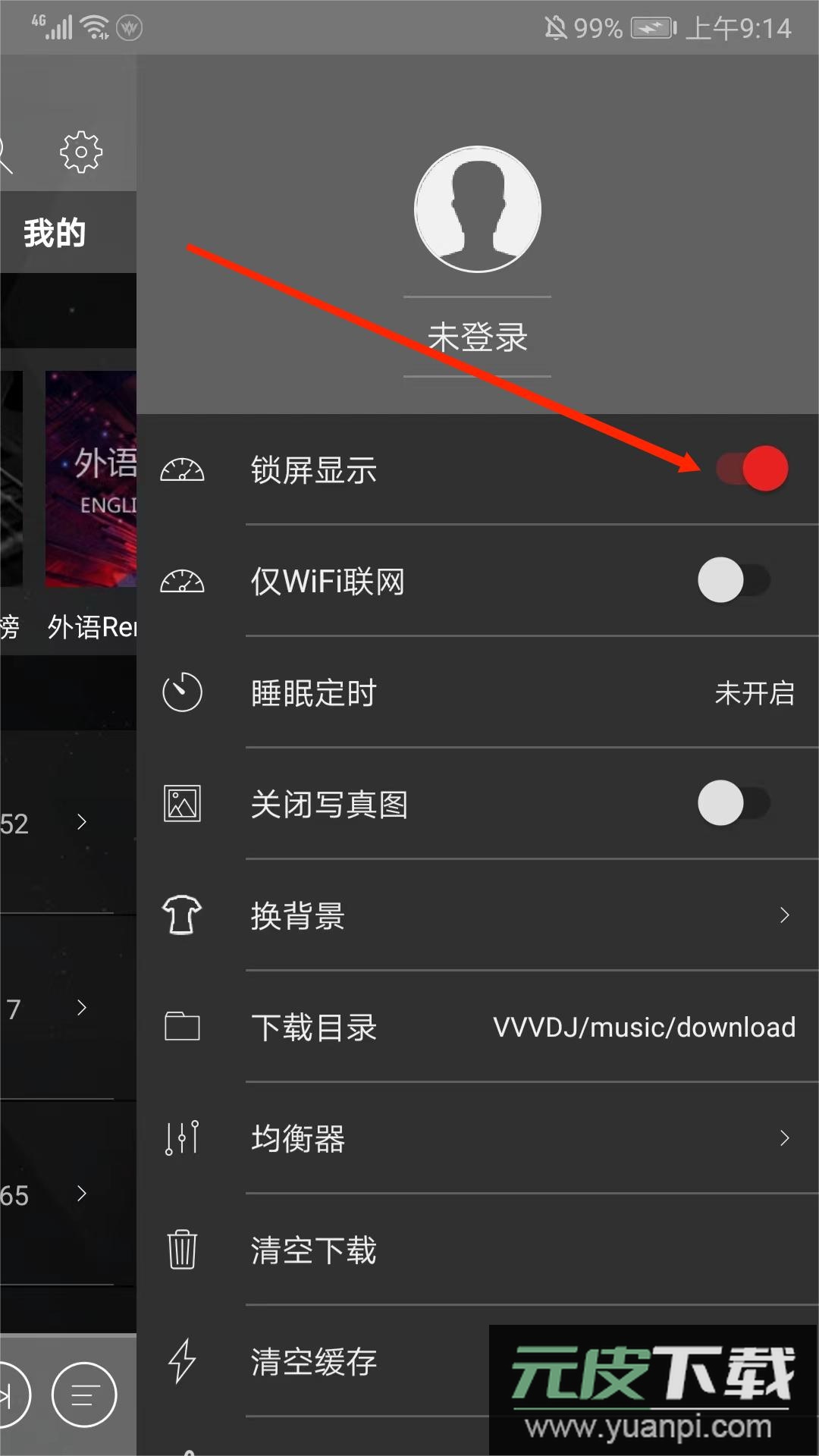 3、开启功能后返回手机主屏幕,锁屏时即可看到正在播放的音乐信息。