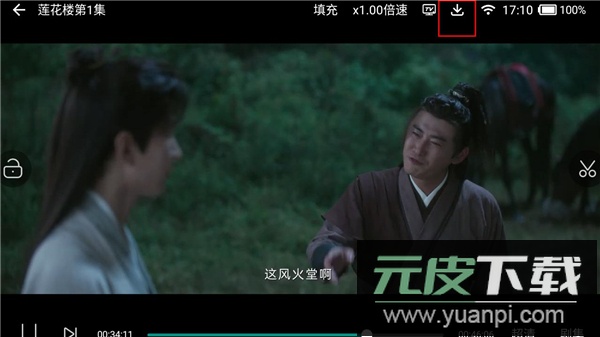 1、进入视频播放页面,点击屏幕上方的下载图标。