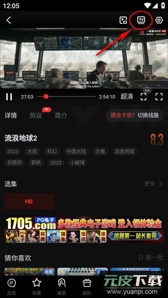 接着播放想要观看的视频,点击画面右上角出现的“TV”图标;