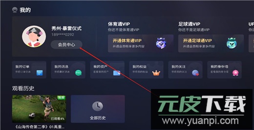 2、在个人中心界面里,找到并点击“会员中心”入口;