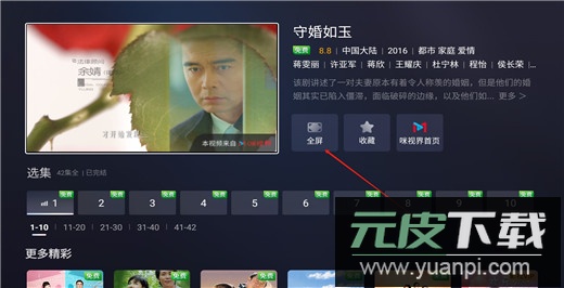 1、在影视剧的详情介绍页,点击“全屏”按钮开始播放;