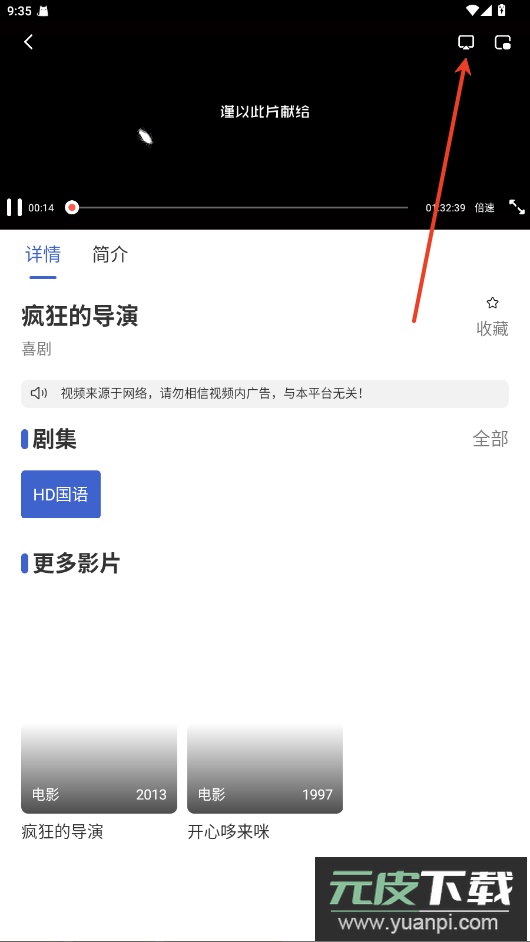 2. 点击播放界面右上角的电视投屏图标;