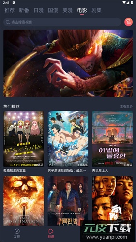 1、平台汇集了日漫、国漫、电影、电视剧等多个热门频道,可供用户自由切换;