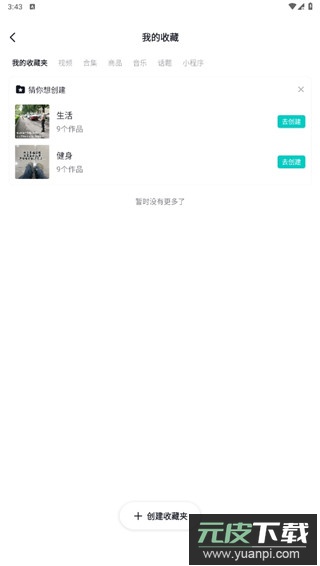 3、在收藏页面内,即可浏览所有已保存的合集、视频及音乐等内容。