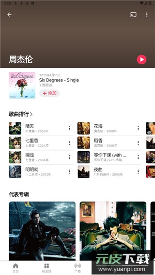 4、点击歌手条目,可以查看其详细介绍、热门歌曲及专辑列表。