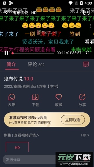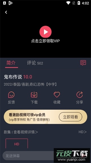 5、观看影片时可以使用弹幕、下载、收藏与分享等多种功能。