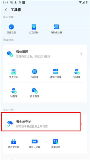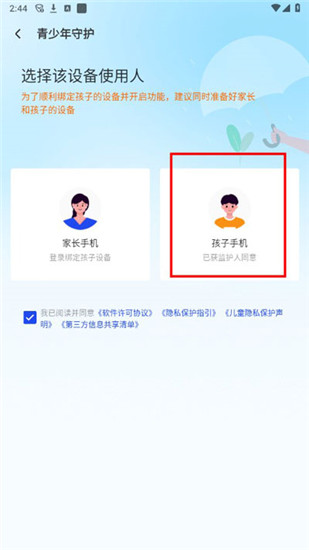 4、家长使用微信小程序青少年守护,扫描关联二维码绑定双方设备;