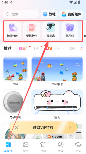 1. 进入软件首页的小组件页面,点击上方的灵动岛功能。
