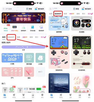 1、首先打开我的桌面应用,切换到“超级组件”栏目。