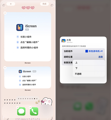 5、在桌面上点击刚刚添加的空白组件,选择游戏机组件的具体样式(该组件与配套壁纸已完美匹配,通常无需设置透明位置;若使用其他壁纸,则可通过选择透明位置来实现组件透明化效果)。