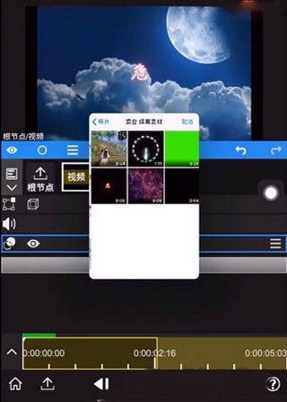 再添加一段视频素材之后,点击根节点,就可以进入时间线编辑页面进行调整;