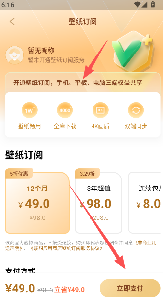 4、完成支付获取订阅权限,随后在壁纸库中选择喜欢的风格进行设置。