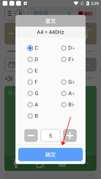 2、指示箭头向左偏移表示音调偏低,向右偏移则表示音调偏高;当箭头稳定在屏幕中央并变为绿色时,即代表音高已调节准确。