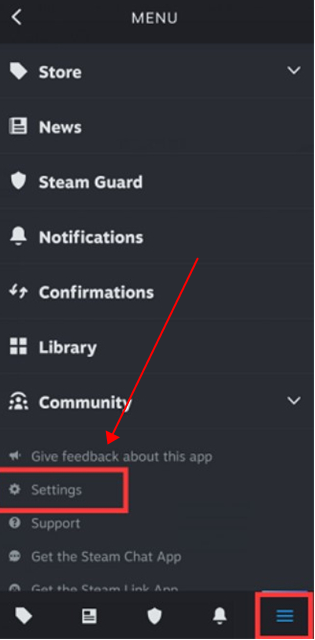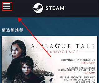 打开Steam手机官方应用,点击屏幕左上角的三横线图标。