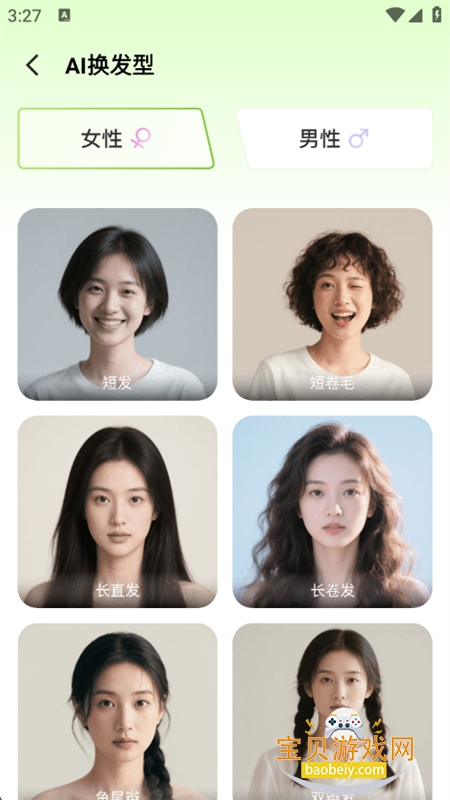 3、点击AI换发型功能,从列表中挑选喜欢的发型样式;