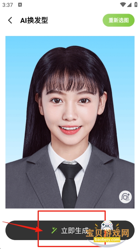 4、选择需要处理的图片,点击立即生成即可快速更换发型;