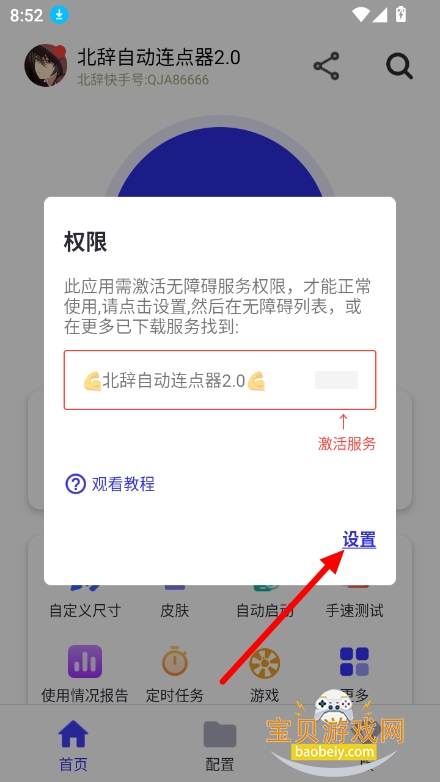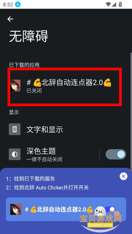 在设置中勾选并开启无障碍服务选项,随后返回应用首页。