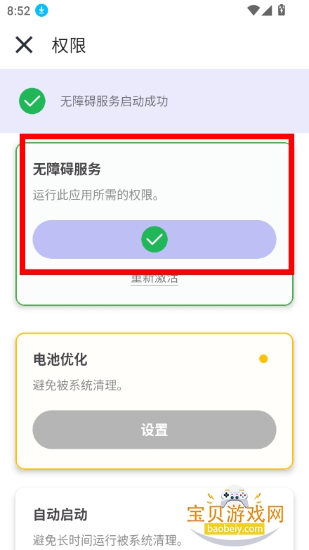 当页面显示无障碍服务已成功开启时,即表示激活完成,此时可以正常使用全部功能。