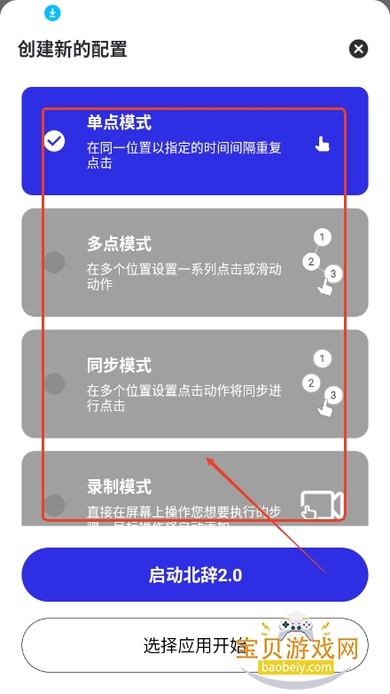 完成模式选择与参数设置后,点击启动北辞2.0即可开始自动连点操作。