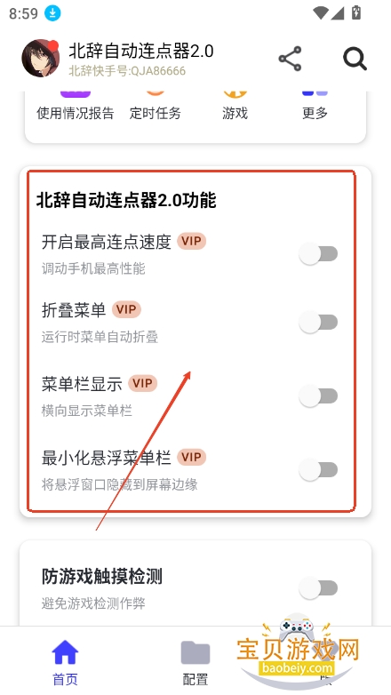 进入应用首页后,可根据需要勾选想要启用的VIP功能。