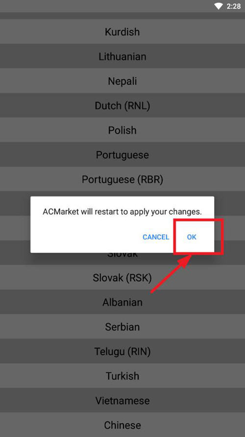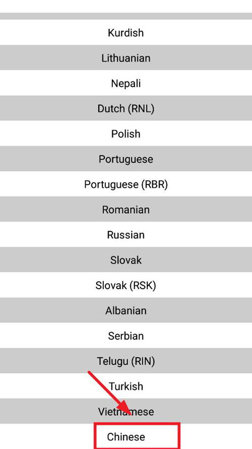 在语言列表中寻找到Chinese,点击进行确认。