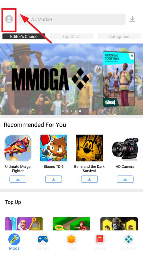 启动ACMarket应用,点击界面左上角的个人账户图标。