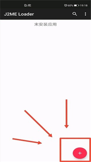 启动J2ME Loader后,点击界面右下角的加号图标;