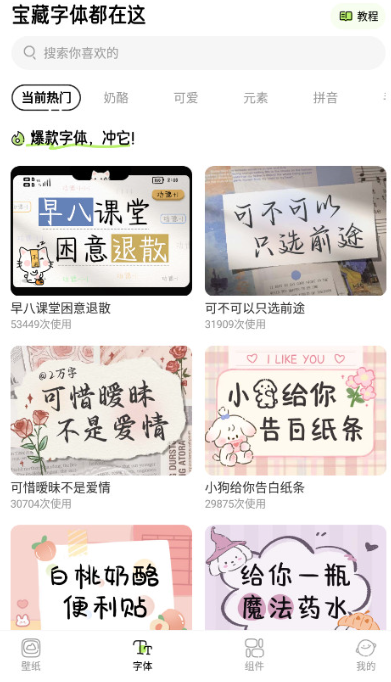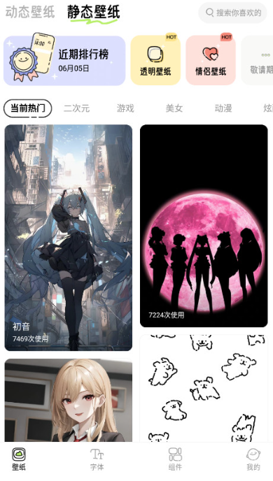启动绘色app后,可以在首页浏览或直接搜索你感兴趣的壁纸、字体等美化资源。