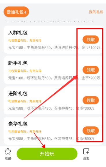 进入游戏页面后,可以领取相关礼包,也可以点击“在线玩”直接开始体验游戏。