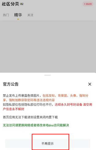 3、仔细阅读启动公告,可以选择加入官方社群或直接关闭。