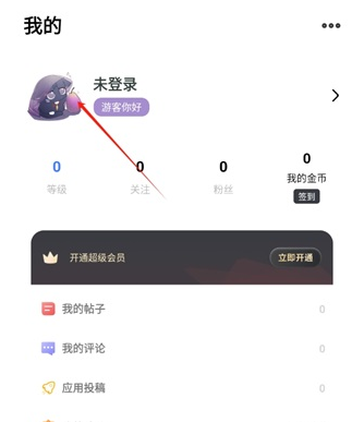 4、切换至导航栏末页的用户中心,点击未登录区域。