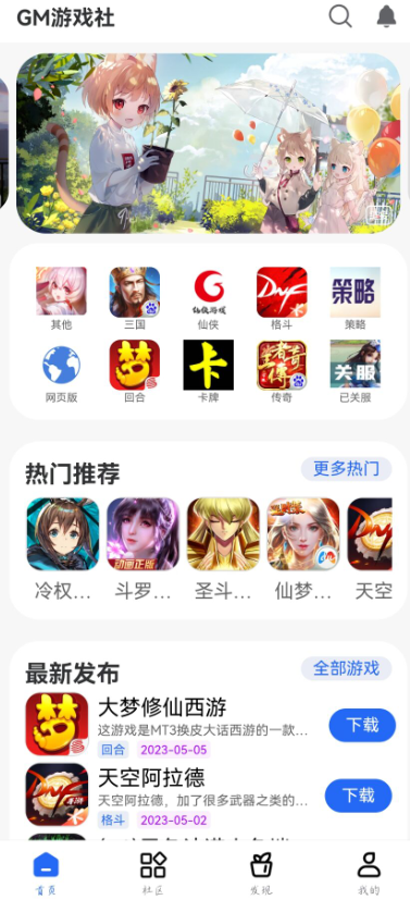 通过本站下载并安装gm游戏社应用,随后进入首页界面。