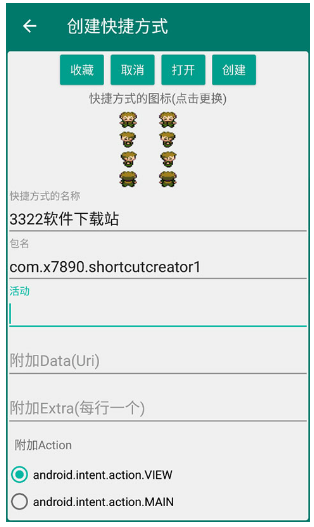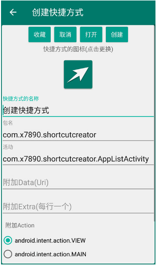 在此页面可以设置快捷方式的具体名称、包名、活动等各项参数。