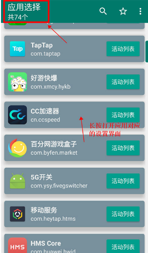 在本站下载并安装应用后,打开即可看到主界面。点击左上角可返回并刷新程序列表;点击目标程序可进入,长按则可打开该应用对应的设置界面。