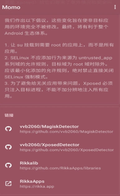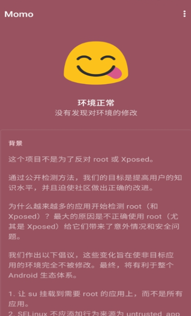 所以,当其他检测工具报告设备存在root或xposed,而Momo未发现时,很可能只是因为那些工具识别到了特定的应用。
