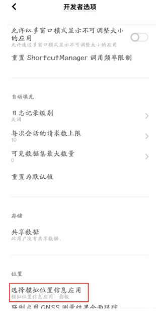 进入位置设置,选择“模拟位置信息应用”;