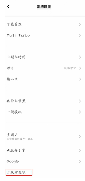 在手机设置中开启开发者模式;