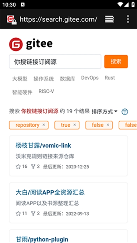 5、软件将打开gitee搜索界面,在开源仓库列表中任选一项进入。