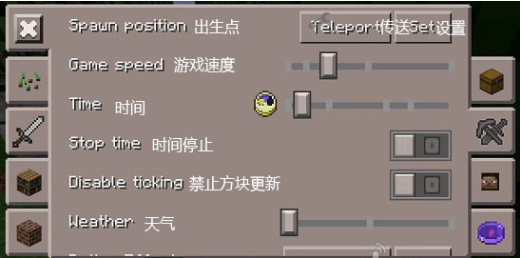 设置栏集成了多种功能性修改选项,例如切换游戏模式,或直接传送至下界等维度。