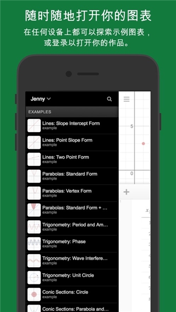 3、提供圆锥曲线与轨迹线等高级作图功能,支持保存作品并与他人共享,可直接在应用中搜索免费数学活动资源。
