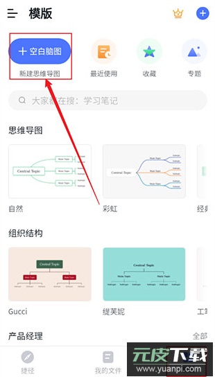 1. 启动ProcessOn应用,在模板区域中选择空白脑图或新建思维导图选项。