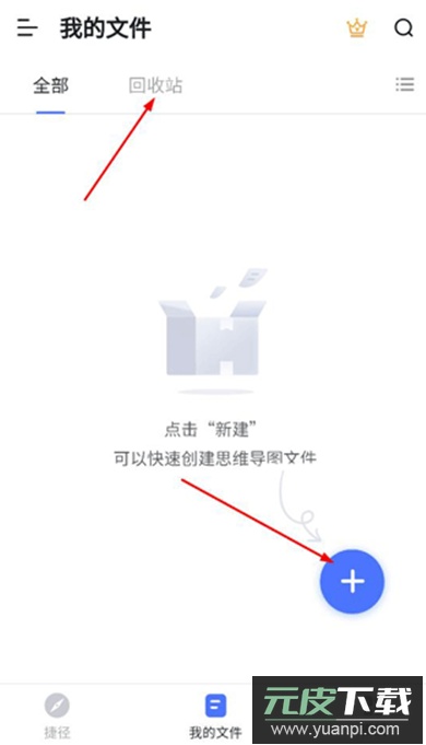 2. 在我的文件页面中可以新建思维导图文件,也能查看已删除的导图记录。