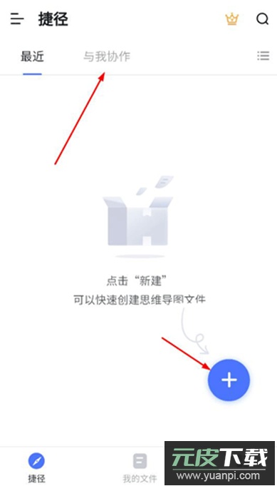 3. 捷径页面会显示最近的思维导图文件,点击右下角可新建文件,并能够邀请多人共同参与导图的创建与编辑。