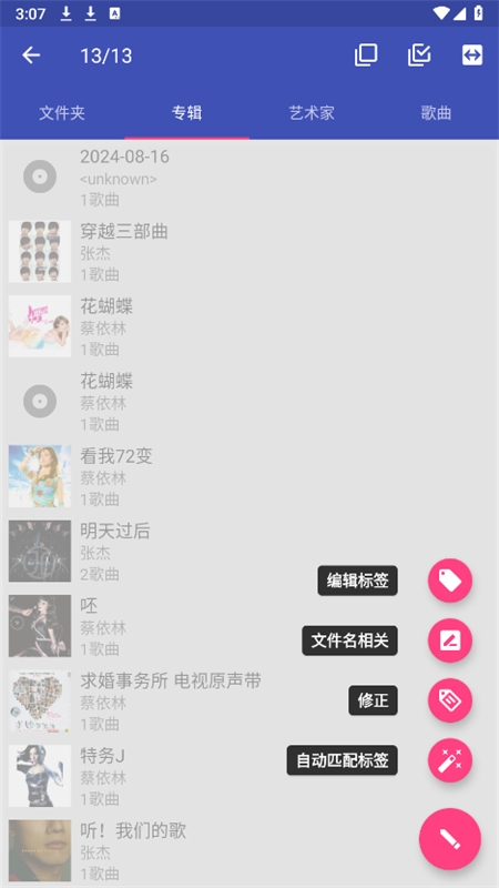 7、可根据文件名自动提取并匹配信息来更新音乐标签。