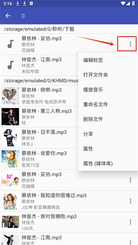 扫描完成后,在歌曲列表中找到目标曲目,点击其旁边的更多选项,进入编辑标签功能;
