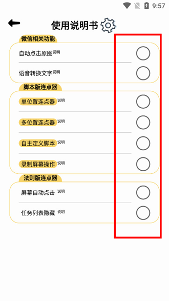 1. 连点器:支持高频率的屏幕连续点击操作,用户可以自由设定点击速度与重复次数,适用于需要快速触控的场景。