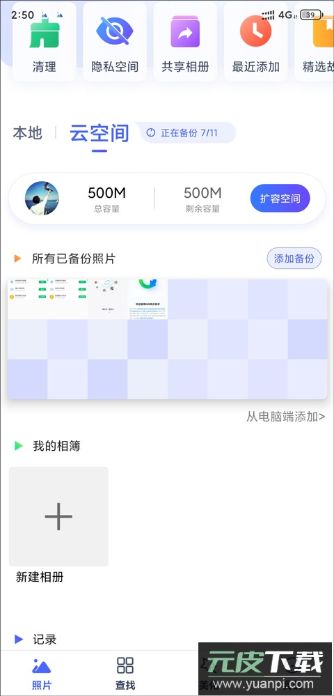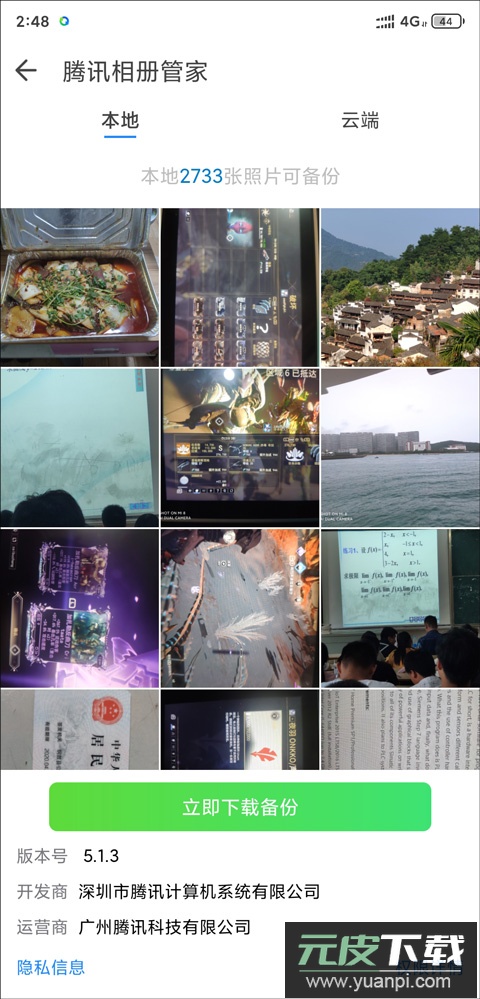 4、点击“立即下载备份”以上传照片,并根据提示下载“相册管家”应用。