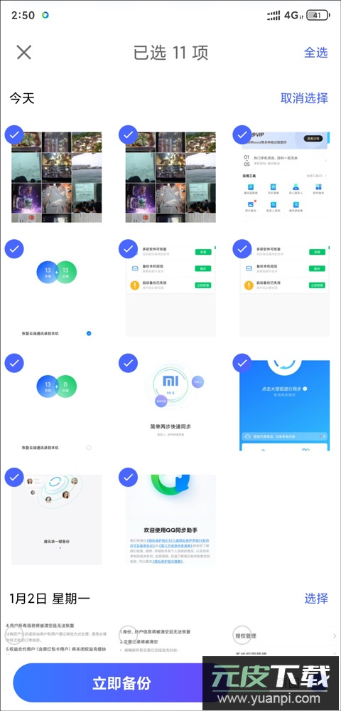 5、在相册管家中勾选需要备份的图片。
