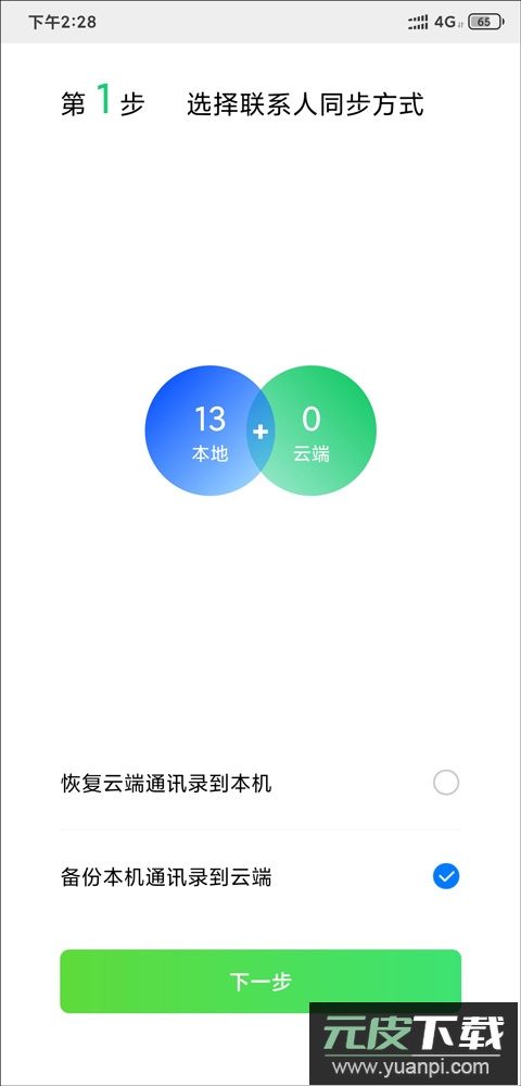 云端通讯录为空时,一键同步会将本机数据全部备份至云端。