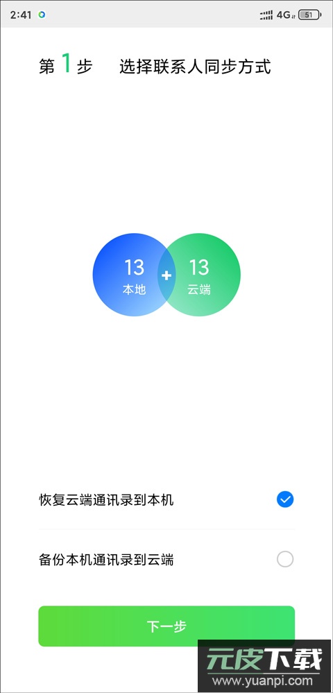 本机通讯录为空时,一键同步会将云端数据全部恢复到手机;
